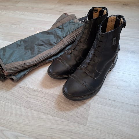 Nämä laatukengät sopii niin tallihommiin kuin ratsaillekin :-) Kengät on mustaa nahkaa ja vuori on mustaa kangasta!