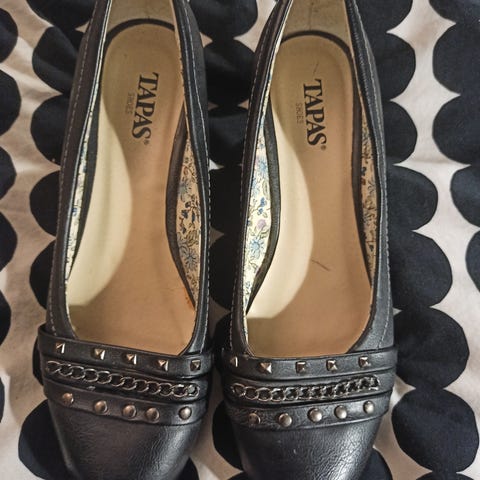 Pohjat puukenkä jäljitelmää :) joissa nätit siniset ruusukkeet.