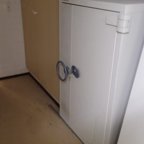 Lukittava metallinen musta arkistokaappi pyörillä, (valkoinen myyty)