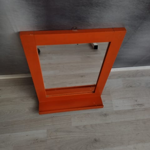 Peilin korkeus n. 54,5 cm, leveimmän kohdan leveys n. 36 cm. Hyllyn leveys n. 39,5 cm, syvyys n. 20 cm, korkeus koristeosan kanssa n. 23 cm.