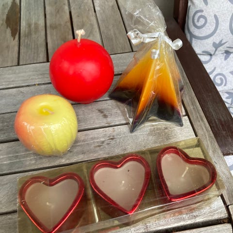 Myydään avaamaton pakkaus, jossa on 2 kukkakynttilää.