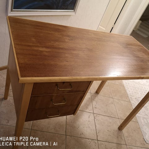 Vanha työpöytä. 134 leveysx55 korkeusx74 syvyys. Etulevy puuta.
