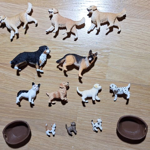 Myydään hyvässä kunnossa Schleich koirat ja kissat. Isot koirat maksaa 7€
