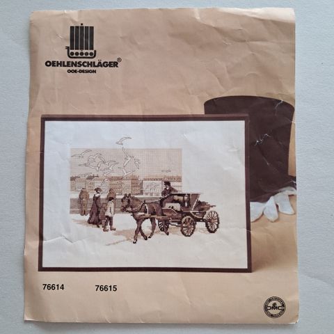 Aloitettu ristipistotyö. Kaikki mitä pakettiin on kuulunut pitäisi olla mukana. Myös neula. Valmiin työn koko 17x22cm. Aloitettu osuus näkyy kuvassa.