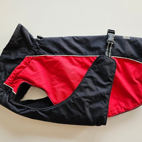 Myyntiin siistikuntoinen ruskea Hurtta mantteli. Selkäosaan tehty jälkeenpäin aukko valjas käyttöä varten.
