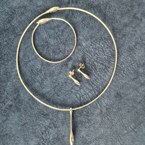 Kalevala koru Lähde, v. 2007, kääty, rannekoru, korvikset, hopea