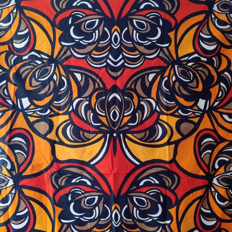 Kaunis kukkakuvioinen kangas luultavasti 70- luvulta.