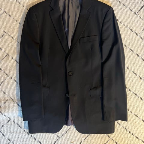 Tyylikäs tummanharmaa Oscar Jacobsonin puku flanellimaisella Vitale Barberis Canonicon super 120's kankaalla. Puku on kuin uusi. En ole tätä juuri lainkaan käyttänyt, koska jäi minulle hieman tiukaksi pian ostamisen jälkeen. Ovh-hinta yli 700 €. Puku on mallia "Edmund". Istuvuus sopii parhaiten melko hoikalle miehelle. Selkäpuolella helmassa kaksi halkiota. Hihojen napinlävet eivät ole toimivat, joten hihoja on helppo muokata tarvittaessa. Kankaan väri on todellisuudessa tummanharmaa sini-harmaalla raitakuosilla, vaikka kuvissa kangas näyttää hieman vaaleammalta.