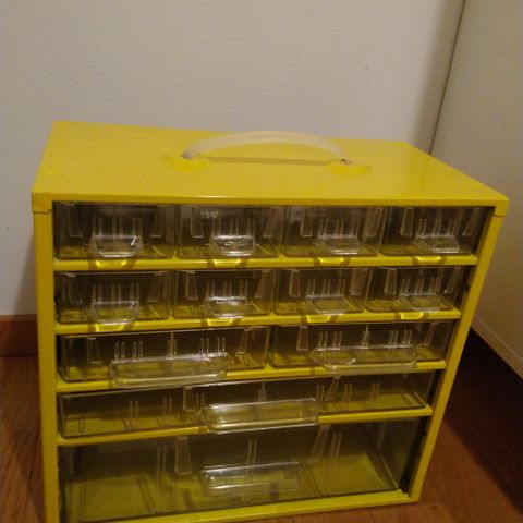 Ihanan pirtsakan värinen - 70luku tuote. Koko 16x30cm. Korkeus 14cm.Yhden laatikon otin liimattu, näkyy kuvassa, muutoin täysin virheetön. Retro väri kirkas keltainen. Voin postittaa vastaanottaja maksaa postikulut. Lokerikko