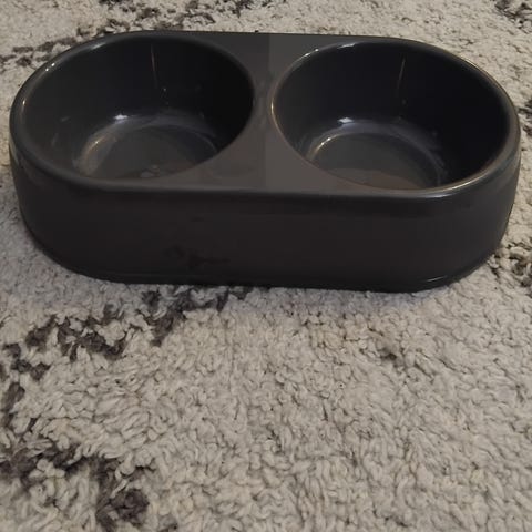 Kaksi lemmikin ruokakuppia, esim. kanille/jyrsijälle. Vihreän halkaisija n. 15 cm yläreunasta, valkoisen Trixie kipon halkaisija n. 12 cm.