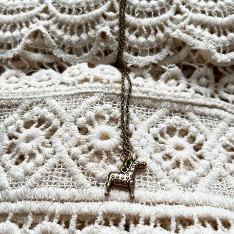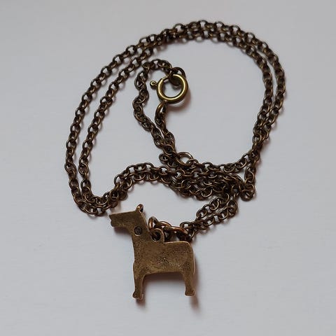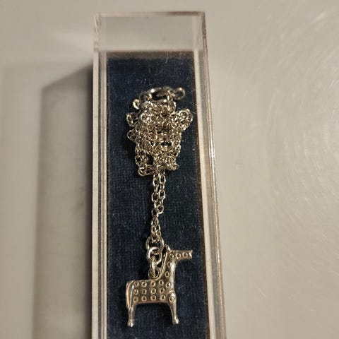 Myydään Kalevalan hopeinen runoratsu kaulakoru nahkanyörillä.