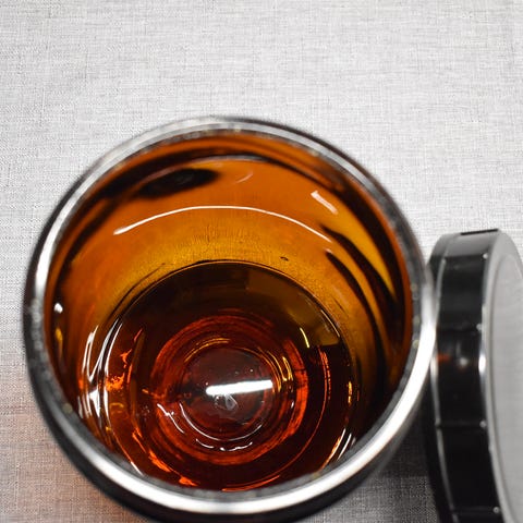 Apteekkipurkki korkkikannella hyväkuntoinen vanha ruskealasi kork. 15,5 cm