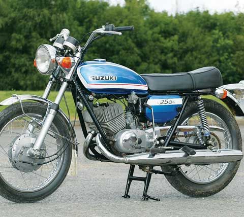 Purettuna useampia Suzuki T 250 pyöriä.