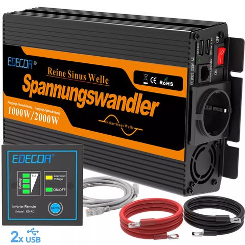 Mukana kauko-ohjain 4 metrin kaapelilla. Tämän ansiosta invertterin voi sijoittaa pois näkyviltä, jolloin sitä voi käyttää kauko-ohjaimesta