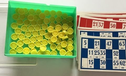 Sisällä kuvassa näkyvät lottokortit ja nappulat. Huomioi että tämä on elävän historian esine, peliä on aikoinaan paljon pelattu ja käytön jälkiä ja kulumaa löytyy.