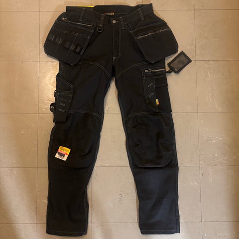Uudet työhousut heijastimilla Blåkläder (koko 48/50/52), mustat CAT-housut (koko 50-52). Saatavilla on myös muita työhousuja.