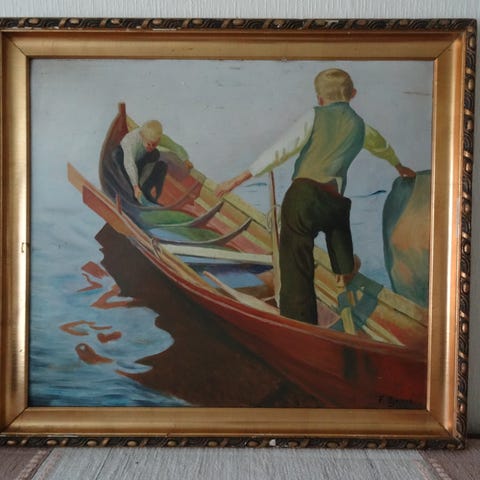 Kakolan vangin 1960-luvulla maalaama taulu (ei signeerausta). Mitat kehyksillä n.41cm x 51cm