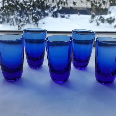 Lasin korkeus on 6 cm ja halkaisija 5 cm. Lasit ovat ehjät ja hyväkuntoiset. Hinta on yhteensä 6 €, pk 8,90 € tai toridiili.