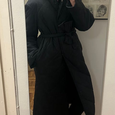 Arketin klassikko pitkä toppatakki mustassa värissä. Moitteeton kunto, ollut käytössä toisinaan, mutta ei pääasiallisena talvitakkina.
