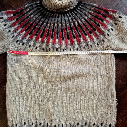 Myydään kerran päällä käynyt letloppi langasta tehty villapaita. Koko noin S.