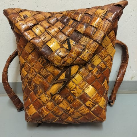 Tuohi pussi. Käsin tehty. Kangas sisusta.