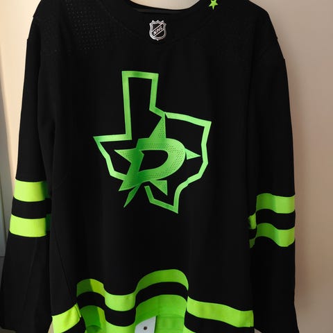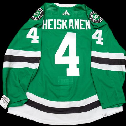 Miro Heiskasen #4 Dallas Stars 23-24 gameworn, eli peleissä käytetty pelipaita. Paidassa todella hyvät pelijäljet ja repaireja paljon.