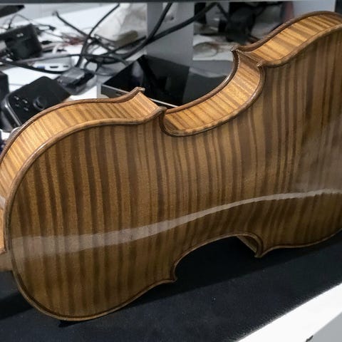 6-string bass viola da gamba built by Kyösti Lehtola in 2024. Top made of Finnish spruce, sides and back made of Khaya mahogany, gut strings, Wittner tuning pegs with built-in mechanism. The instrument was made according to drawings by the Frenchman Michael Collichon in 1689. The instrument has a clear and resonant sound. The bass side sounds are particularly rich.