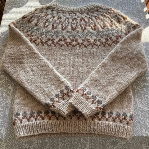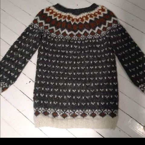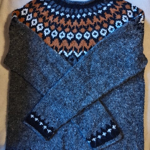 Islantilaisesta 100% villasta neulottu kaarrokeneule, lankana hahtuvalanka Plötulopi kaksinkertaisena.