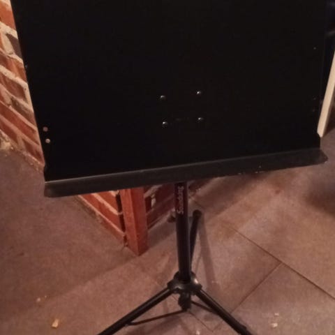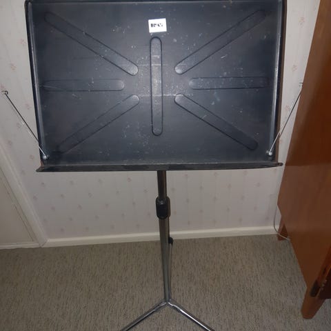 Vintage metallinen taitettava nouttiteline. Korkeus on säädettävissä. Kokonaiskorkeus 125 cm plus nuottien syöttökorkeus 22 cm. Hyvä laatu. Valmistettu Saksassa. Hyvässä kunnossa.