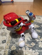 Toimii normaalisti. Liikkuu ja juttelee. Mukana 1 sampan vesitykit jotka saa ammuttua, toinen puutu .