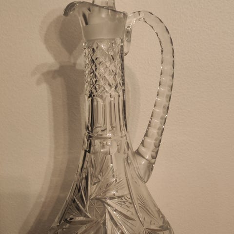 Todella nätti kristallikarahvi kukkamaljakoksi, tai viskille / konjakille jne. Kerrassaan upea, vanha vintage, mutta virheetön. Upea myös lahjaideana. Voin postittaa.