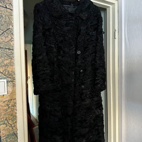 Aito siisti sinikettu naisten turkki ja päähine 1990-luvulta, niin kuin uusi vähän käytetty, teetetty ateljee työnä koko noin 40, sivuissa taskut. Pituus noin 80cm, hihan pituus noin 65cm, rintamitta noin 116cm, kainalosta kainaloon noin 58, selkämitta noin 42cm. Vuori on ehjä ja hyvässä kunnossa.