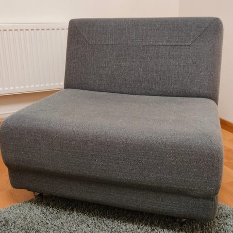Ollut vähällä käytöllä, siisti, hyvin vähän ”elämän jälkiä”. Kermanvaalea, himmeähohteinen tiivis verhoilukangas. Vain nouto.