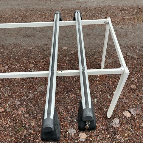 Telineet tuli aikanaan suksiboksin mukana, avaimet puuttuu. Uuden avaimen saa esim. Kärkkäiseltä 6,90€/kpl lukossa olevan numeron perusteella.