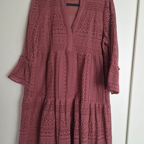 Kaunis uusi viininpunainen pitsimekko. Edessä pitsi ja vuori, takaa sileä. Koko M. Merkki Vero Moda. Materiaali päällinen 60 % polyesteri, 35 % viskoosi, 5 % elastaani, vuori 100 % polyesteri. Uusi laput kiinni.