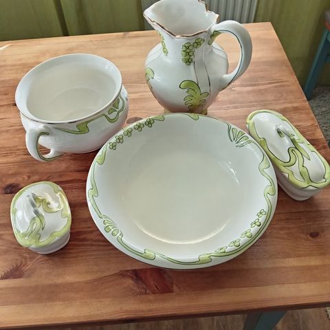 Myydään kaunis vanha pesusetti: pesuvati ja kannu, ehjät. Hinta 50 euroa. Maksu käteinen. Nouto Malmilta.