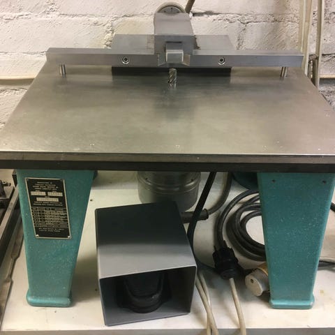 Jyrsii metallin reuna visteen valitun teen mukaan. Mukaan muutama eri terä. Putkarit kuulemma tekevät tällaisella teräs putkiin viisteet ennen hitsausta. Autojen koneistus ja tuunaus osia tekevät myös. Kone todella hyvässä kunnossa. Ei taida 1000e uutena tällaista saada.