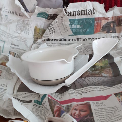 Lähes käyttämätön Arabian Seita Arctica kastikekulho. Korkeus 8cm, halkaisija 15,8cm. Vetoisuus 6dl.