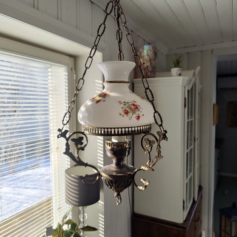 Antiikki valkoinen kattovalaisin. Täysin kunnossa, ei käytön jälkiä. Muutossa yksi tuollainen hely hukkunut