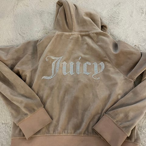 Juicy Coture t.sininen huppari koko M (kokolappu L, mutta pienehkö). Tämä vetoketjullinen huppari on valmistettu pehmeästä ja mukavasta velourkankaasta. Siinä on klassinen huppari-design, jossa on kiristysnauhahuppu, vetoketju koko pituudelta ja kaksi etutaskua ja upea strassein koristettu selkä! Käytetty ihan paristi ja ollut lähinnä kaapissa jemmassa. Väri taittaa vähän violettiin vaikka onkin sininen.