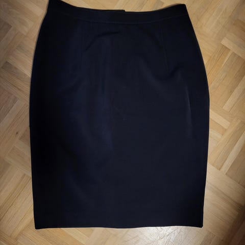 Vihreä hame, edessä taskut, lappuja ei ole, pituus 102cm.Kangas liukuvaa.