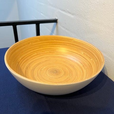 Upea bambu kulho, josta voit esimerkiksi tarjoilla salaattia. Kulho on käsinvalmistettu.