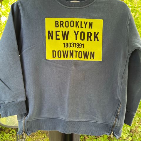 Ruskea collegepusero, jossa kukkahymiöitä ja tekstiä