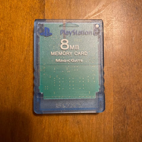 * Mukana tulee: Se mikä kuvassa eli PS 2 -muistikortti tehdaspakkauksessaan turvallisesti pakattuna kuplamuoveihin.