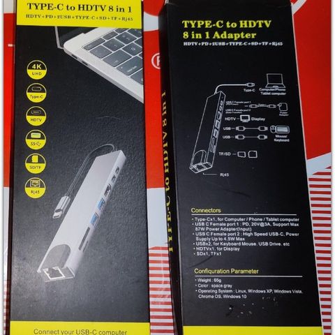Uusi ja käyttämätön 4-porttinen USB-keskitin / USB-hubi, joka liitetään tietokoneen / mobiililaitteen USB-C -porttiin. Kolme sivulla olevaa porttia on USB 2.0 portteja ja päädyssä oleva portti on nopea USB 3.2 Gen 1 (ennen nimitys oli USB 3.0) portti. Käyttökohteina mm. hiiret, näppäimistöt, muistit, OTG puhelimissa. Mukana tulee myös adapteri, jolla hubia voi käyttää myös USB A -portissa, mutta adapteria käytettäessä hubi on täysin USB 2.0 hubi.