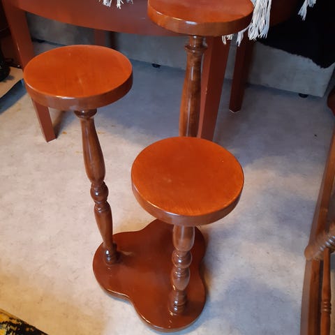 Puinen kukkapöytä, kahdella tasolla