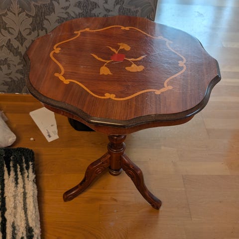 Pöytä korkeus 62cm, halkaisija 73cm.