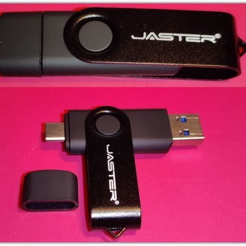 Tästä tätä ilmoitusta kirjoitettaessa/uusittaessa tarjolla yksi tai useampi uusi ja käyttämätön todellinen monikäyttö USB-tikku, tehdaspakkauksessaan oleva 3 in 1 JASTER USB 3.2 gen 1 (entinen nimitys USB 3.0), Type-C ja Micro USB 64Gt USB-muistitikku: Toisessa päässä USB 3.2 gen 1 -liitäntä ja kun sen avaa, muuttuu Micro USB -tikuksi ja toisessa päässä USB-C. Kätevä esimerkiksi tietokoneiden kanssa sekä uudempien C-liitännän omaavien tietokoneiden, puhelimien ja tablettien kanssa. Nopea kirjoitus- ja lukunopeus uudemmissa USB 3.2 gen 1- ja type-C -laitteissa. Yhteensopiva myös vanhempien liitäntöjen kanssa niiden nopeusrajojen puitteissa. 64 Gt muistin todellinen kapasiteetti on noin 58 Gt - 60 Gt. Muistitikun koko noin 6 x 2 cm. Kuvissa koko- ja nopeustestit.