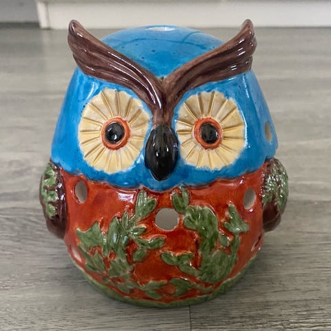 Kaksi vanhaa, siistikuntoista Pöllö koriste-esinettä.