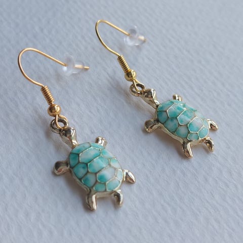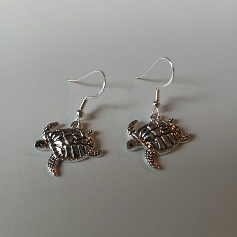 Myynnissä käyttämättömät kilpikonna korvakorut. Korvakorut on hopeoitu.